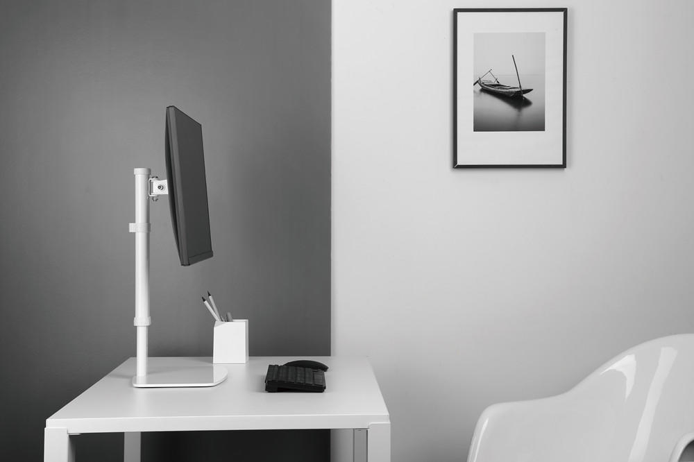 Your workstation is ultimately yours to figure out. You may already have the perfect work setup and don’t want to mess with it too much. A single monitor mount that’s very basic may be all you need to complete the look.