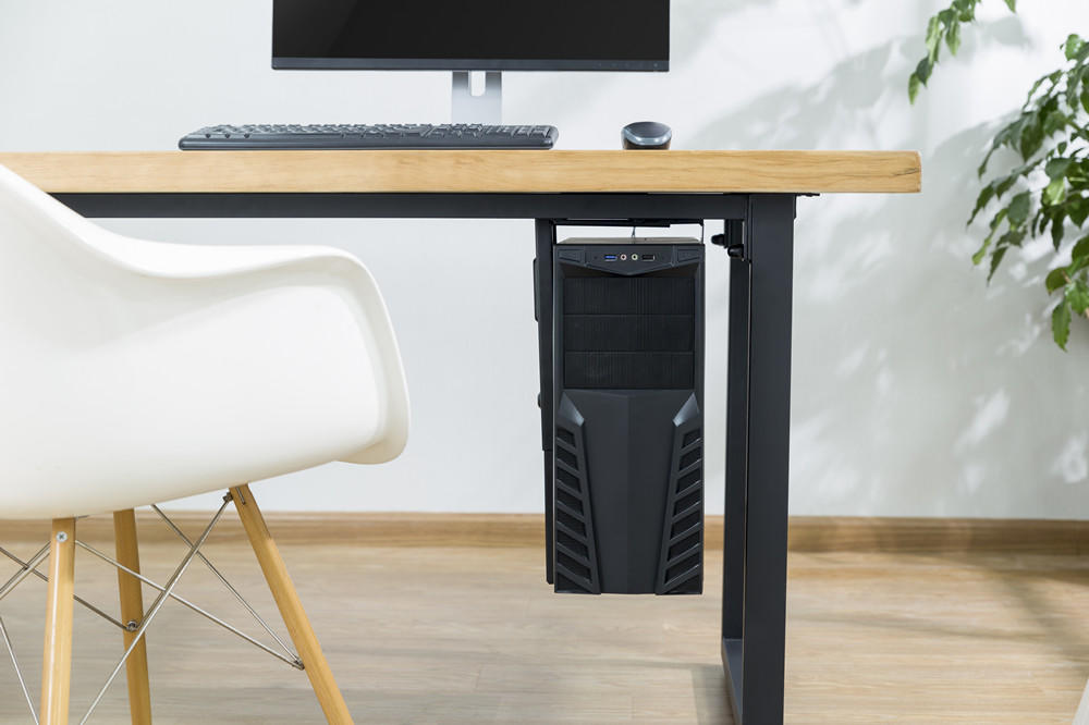 A desktop computer is going to have a big case that needs to be put somewhere. If it’s on a tabletop, there’s no reason for it to be. If it’s sitting on the floor, this might not look so inviting. An adjustable under-desk CPU mount affixes it to the underside of your desk which saves you a mess.