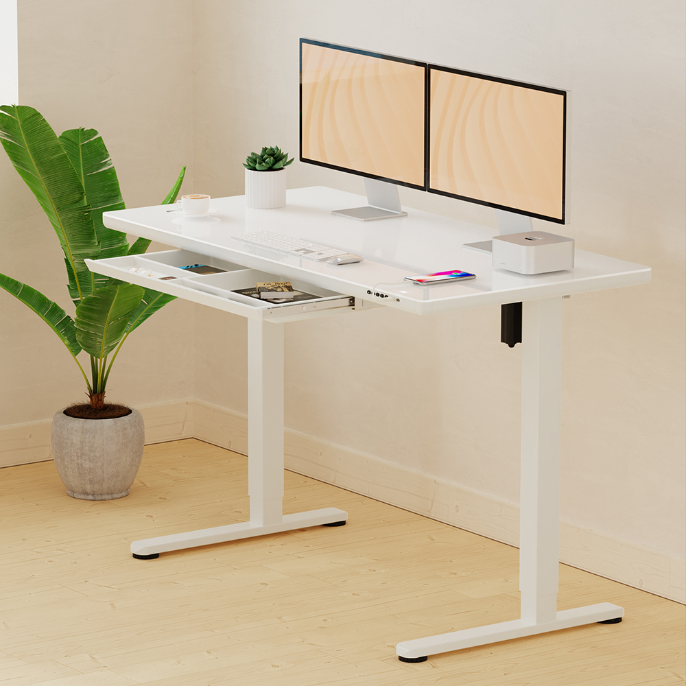 2. Electric Glass Tabletop Height-Adjustable Ergonomic Standing Desk with Drawer