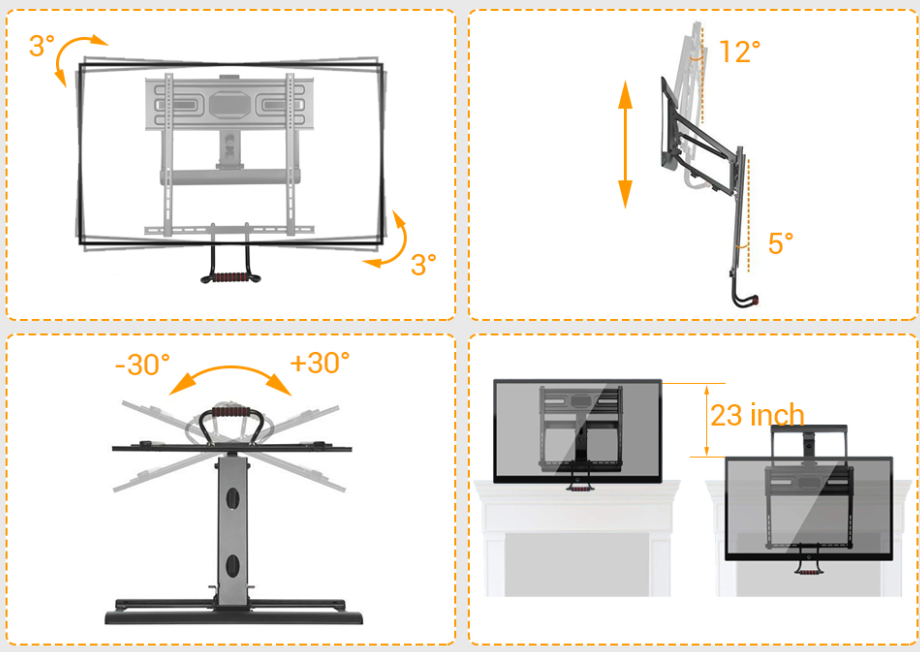 A above fireplace TV wall mount should support frequent angle adjustments, clean cable routing, and safe heat clearance, especially in Canadian living rooms where fireplaces and seasonal temperature swings are common.