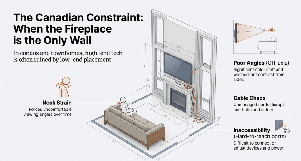 Let’s be honest—above-the-fireplace TV installs aren’t going away in Canada.